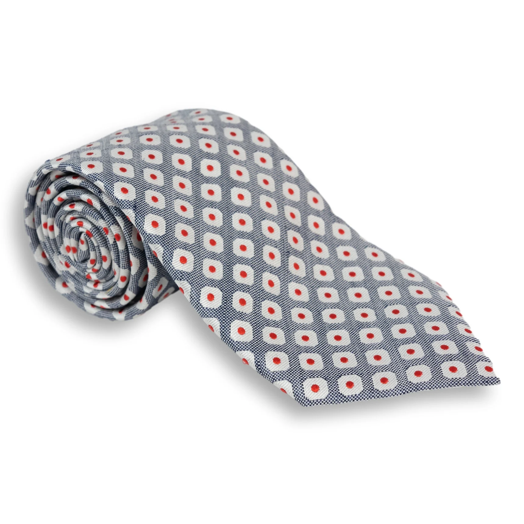 This 100% silk traditional tie is hand-finished and 8 cm in width, 149 cm in length. The color and design makes it versatile and complimentary to many wardrobe options. The perfect addition to every closet and tie collection. Made in England and dry clean only.