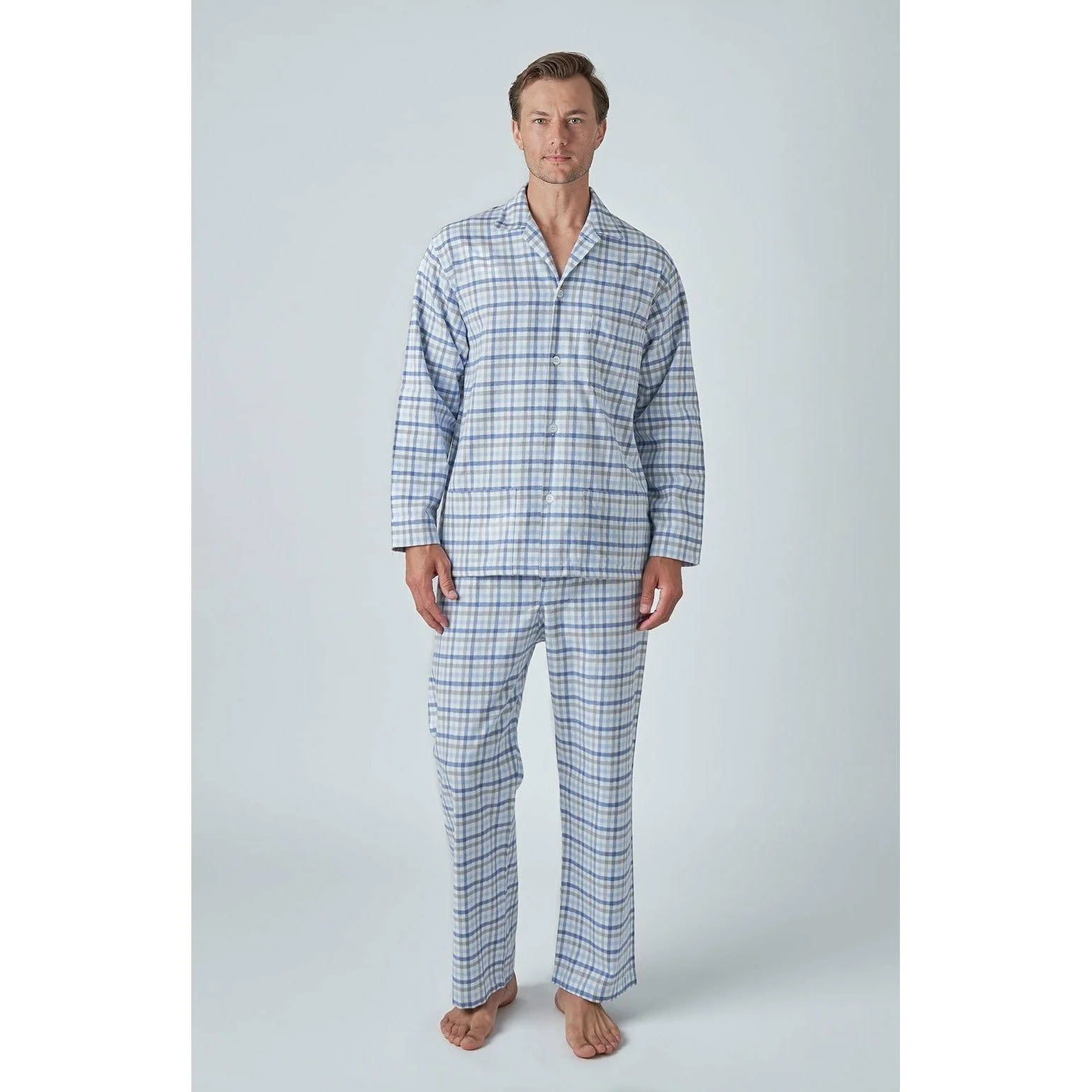 These classic style men's pajamas are crafted from the finest quality cotton with drawstring waist bottoms. The breathable and soft fabric allows for the most comfortable and cooling feel on the skin.