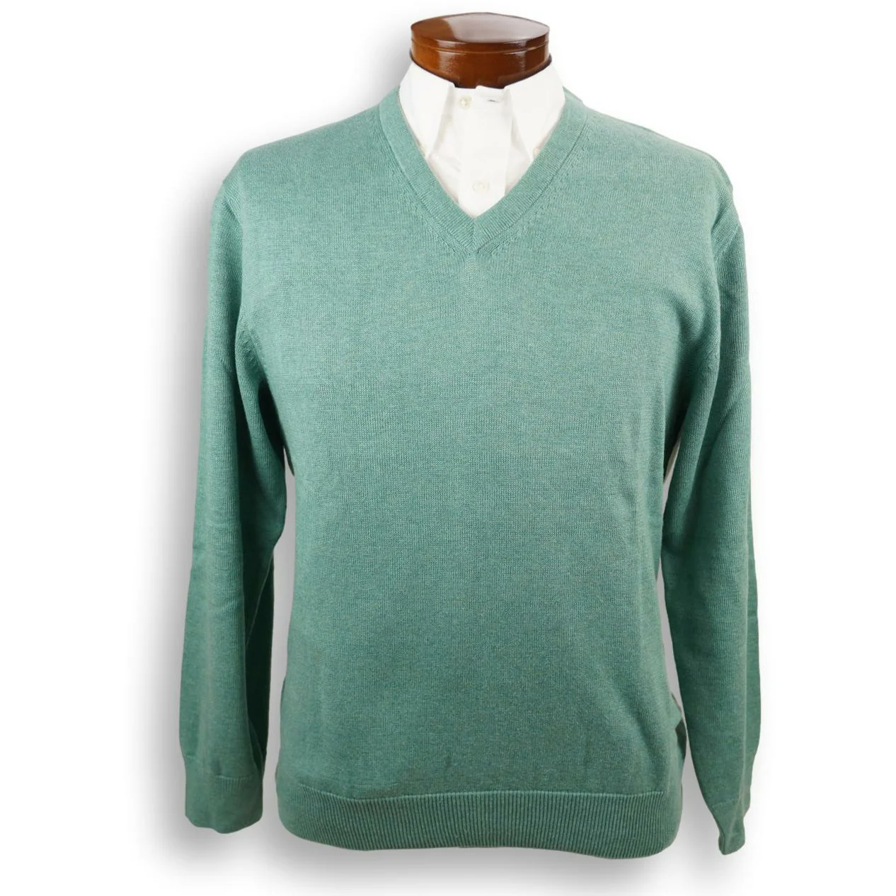 Our 100% Pima Cotton V-Neck Sweater is made in Peru for The Andover Shop. This handsome spring sweater is perfect for layering on the cooler Spring and Summer days. This sweater has a shallower V, making it more versatile to wear with or without a tie.